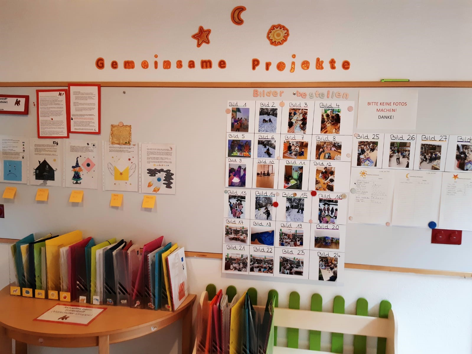 In unserem Haus haben wir aktuell 2 Stammgruppen: Sonnen- und Sternengruppe. Da wir offen arbeiten, gibt es überall unterschiedliche Spielbereiche sowie ein Spielzimmer (Mondraum) für beide Gruppen. Wir verbinden die Vorteile der Stammgruppen (feste Ansprechpersonen für die Eltern und als Elterngesprächspartner, feste Rituale in der Stammgruppe: Morgenkreis und Mittagessen) und des offenen Konzepts (Freier Spielort und -partner aus beiden Gruppen, zusätzliche Räume und gruppenübergreifende Aktionen wie Gestaltung, Musiktreff, Bilderbücher, Partizipation uvm.)